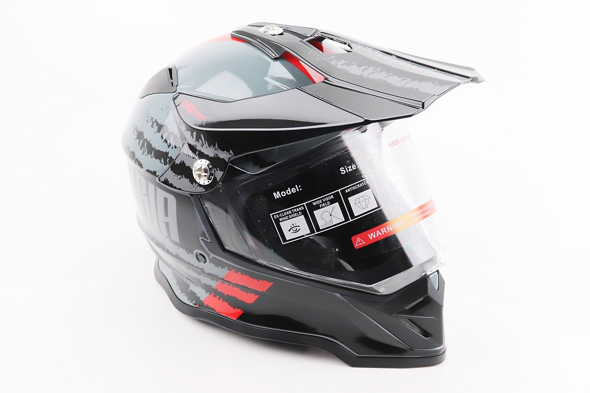 Шлем кроссовый/эндуро/АТV со стеклом BLD-819-7 L (59-60см), ЧЕРНЫЙ/СЕРО-КРАСНЫЙ