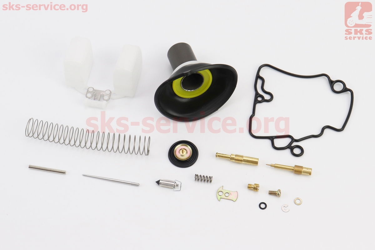 Ремонтний к-кт карбюратора 50-80cc, 15 деталей + поплавець + мембрана 18мм