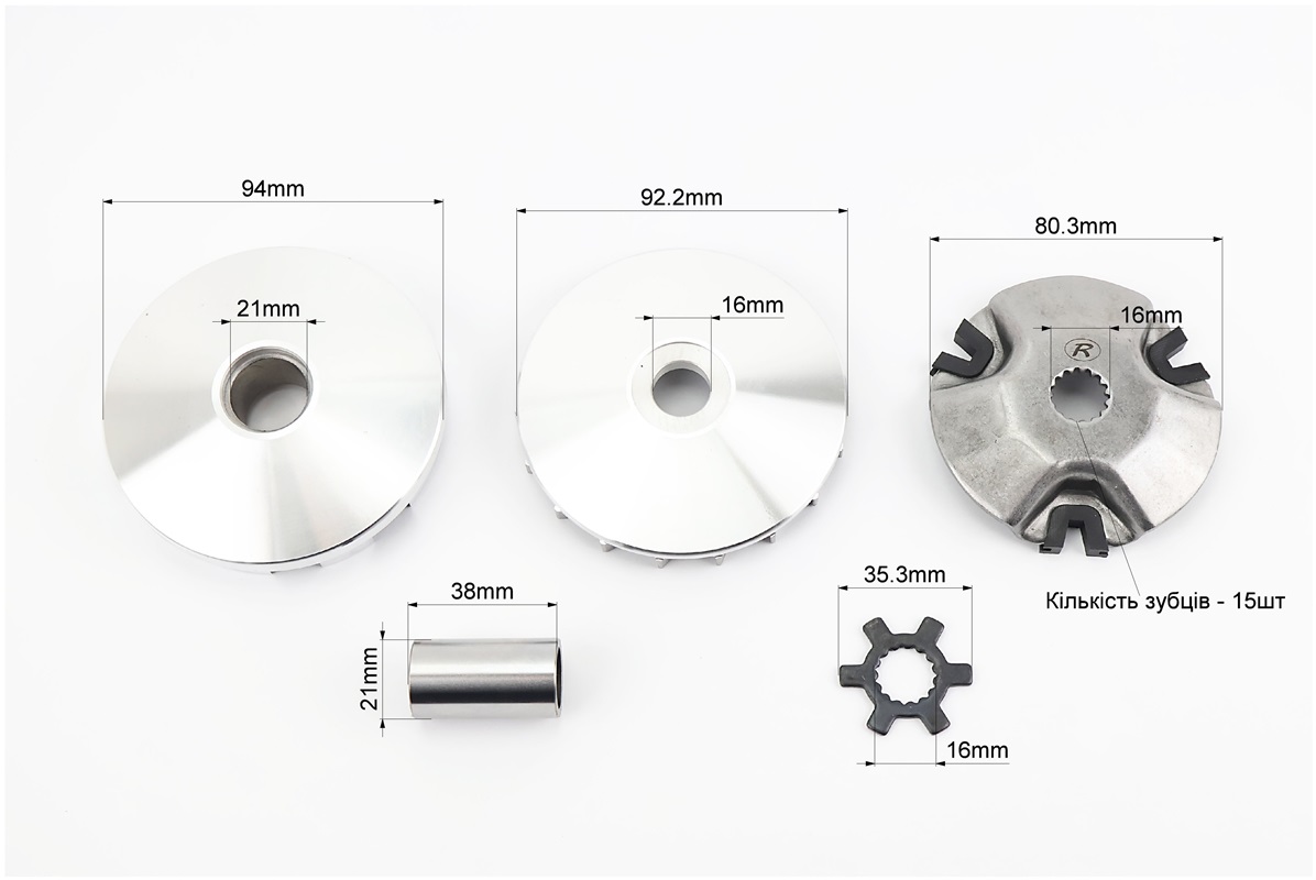 Вариатор передний к-кт Yamaha JOG 90 (под вал 16мм) + втулка, крыльчатка, крест