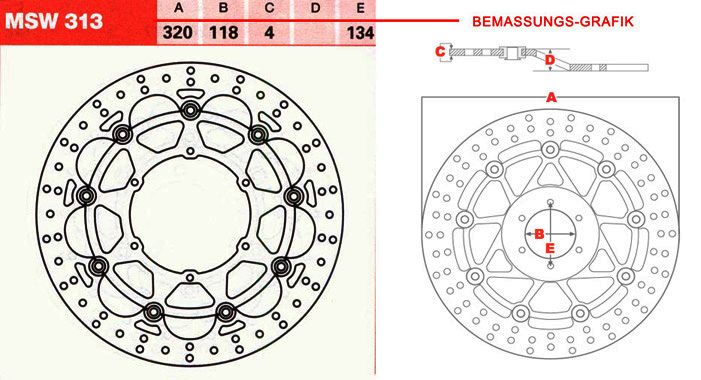 Гальмівний диск збільшеного діаметра для використання на мотоциклах класу Supermoto. Для встановлення потрібно застосування спеціального кронштейна кріплення гальмівного супорта.
