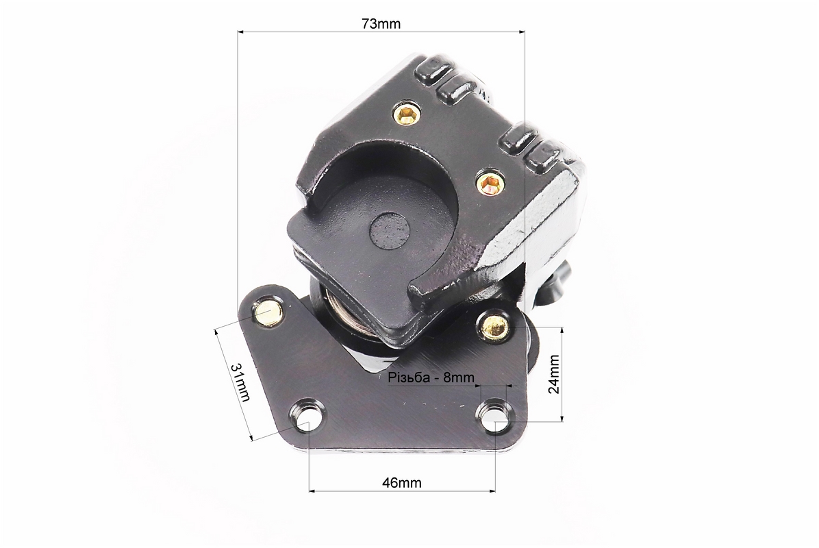 Тормозной суппорт передней системы (однопоршневой)+колодки, черный