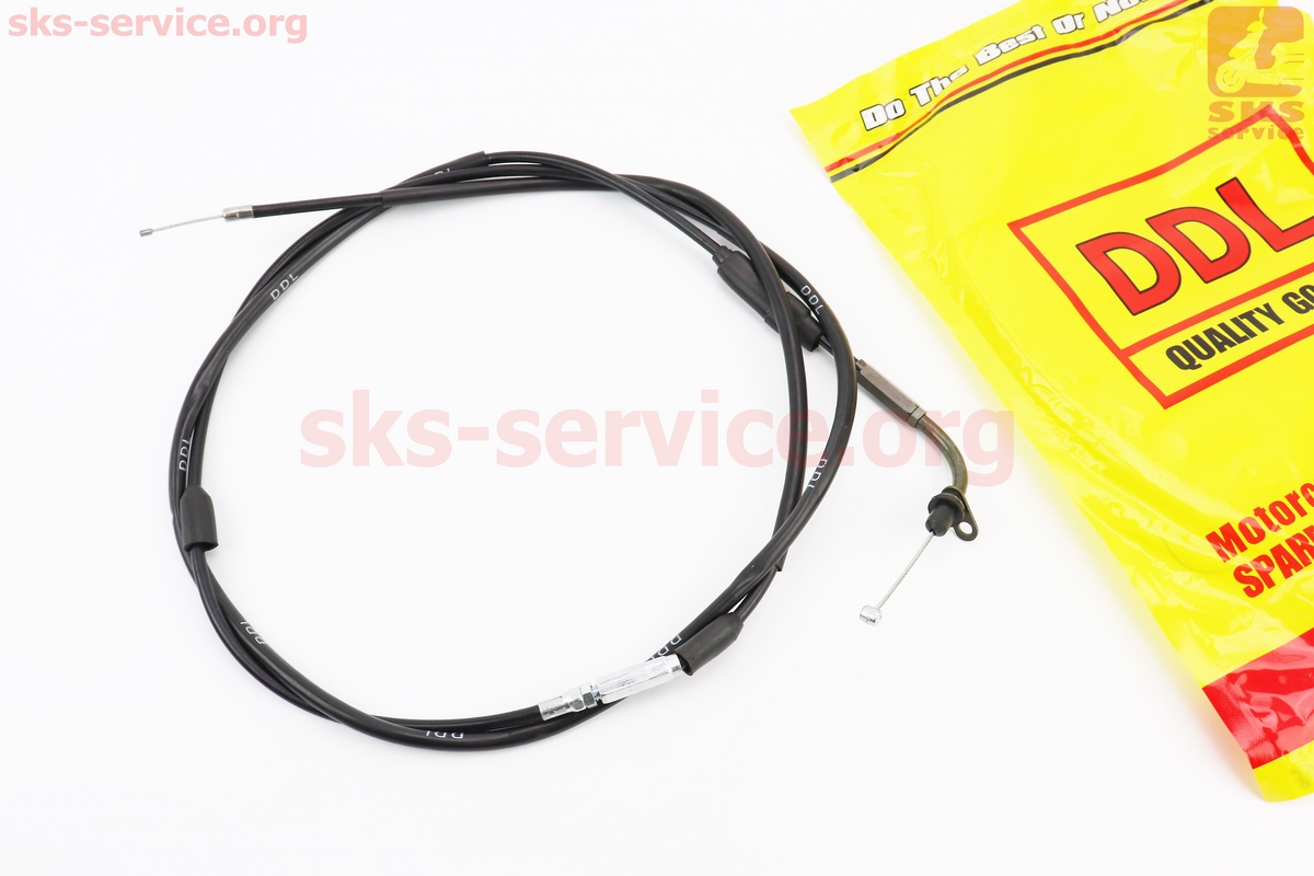 Трос газа для GY6 под карбюратор JH70 (крепление верхнее с шайбой) (с регулировкой по длине) (трос 196см; кожух 186см)