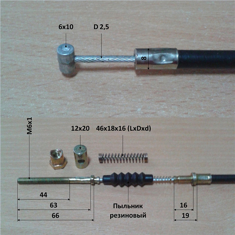 3. Комплектность – регулятор свободного хода, трос, кожух троса, рубашка кожуха, гофрированный резиновый пыльник наконечника.