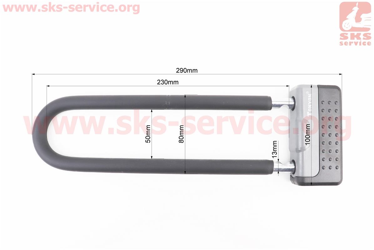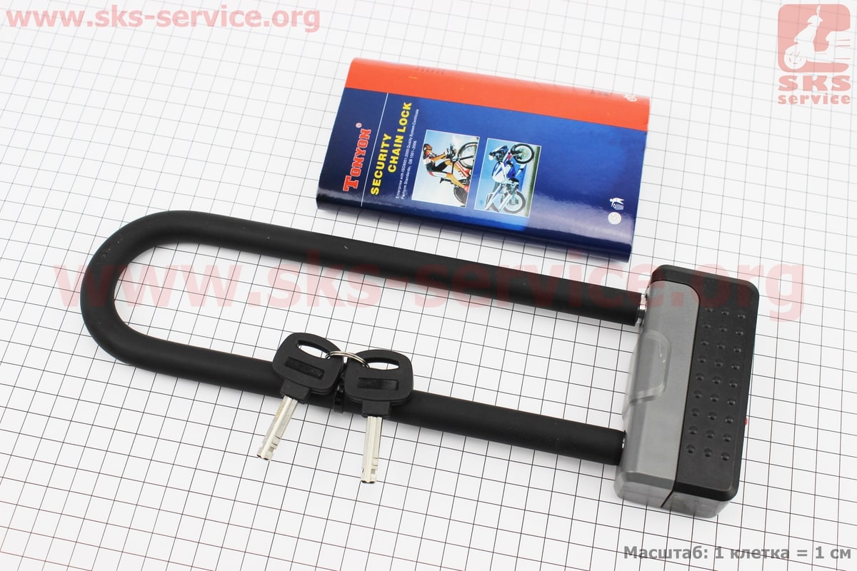 Замок протиугінний U-подібний 100x290 (50х230)мм, товщина скоби 13мм під ключ, чорно-сірий TY339D
