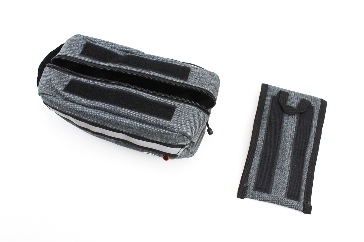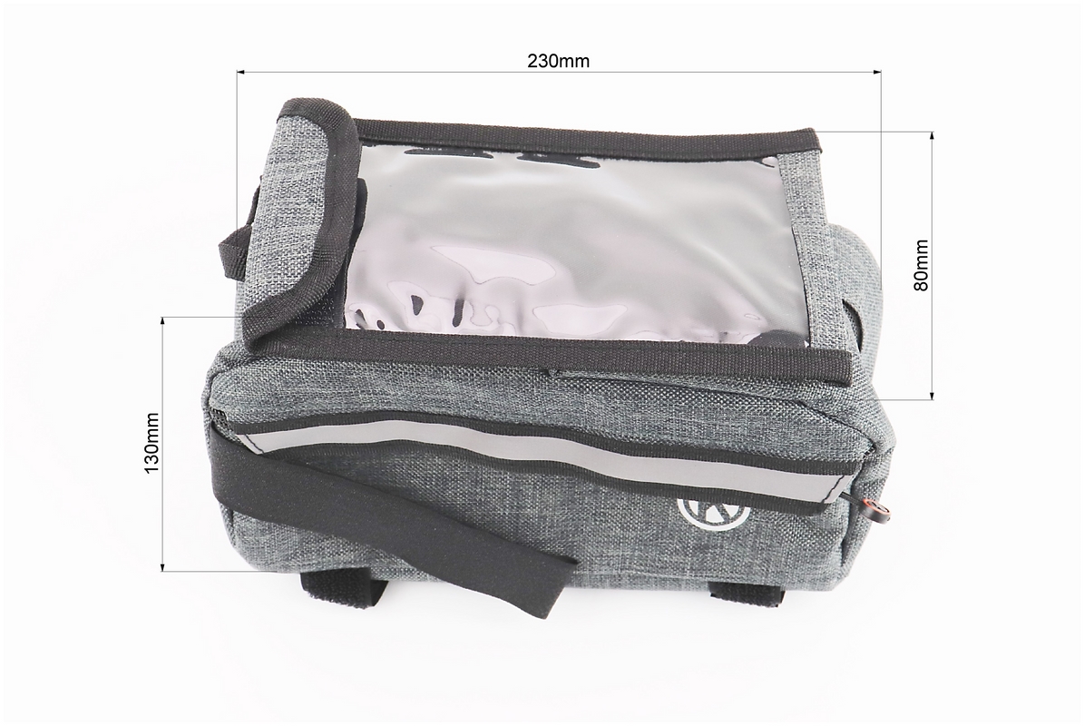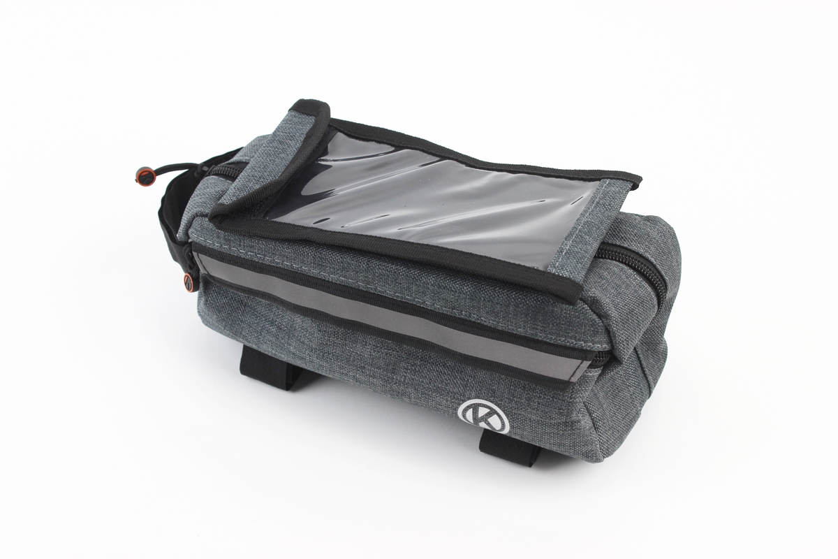 Сумка на раму с отделением для смартфона 220х90х110мм, светоотражающие полосы, крепл. на липучке, серая