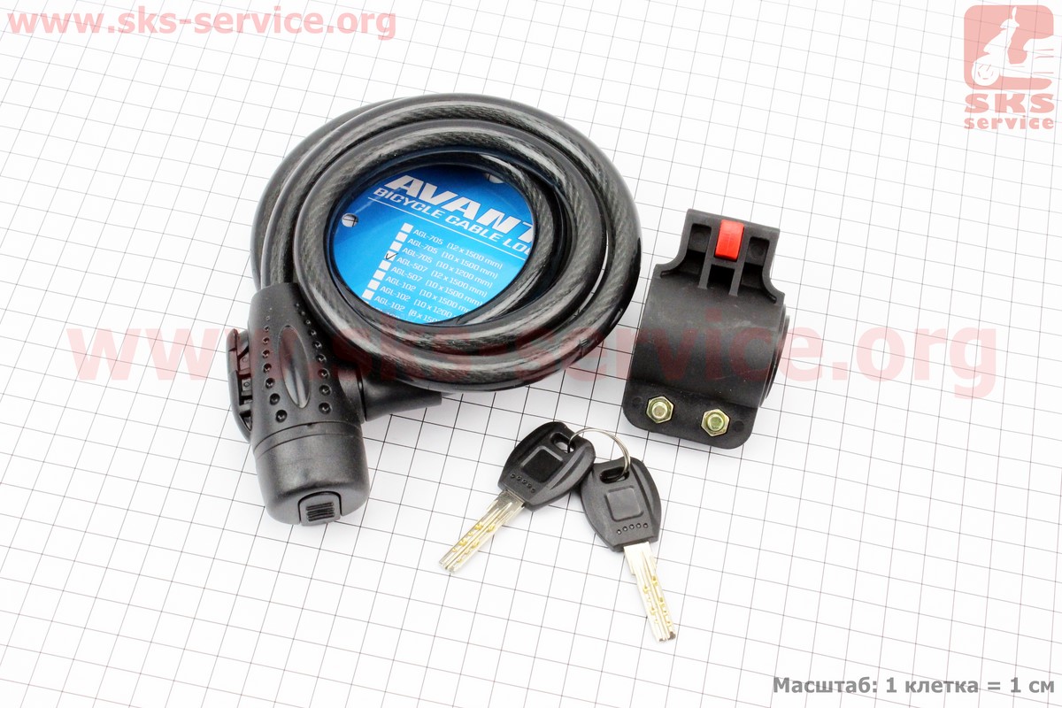 Замок противоугонный тросовый 1500х12мм под ключ, крепл. за трубу сидения, AGL-507
