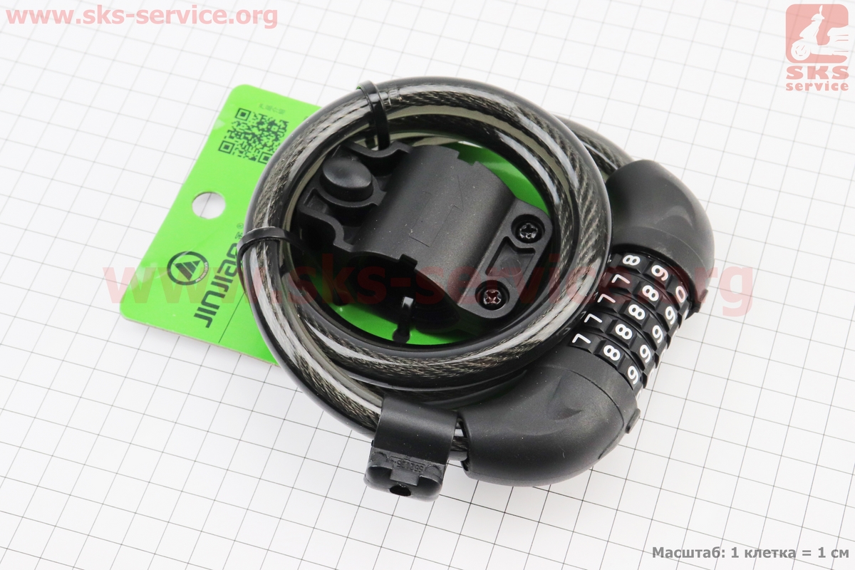 Замок протиугінний тросовий 1200х12мм з 5-ти значним кодом, кріплення за трубу сидіння, 502/501