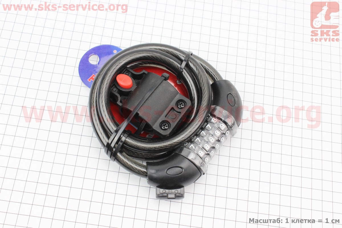 Замок противоугонный тросовый 1200х12мм с 5-и значным кодом, крепл. за трубу сидения, TY566