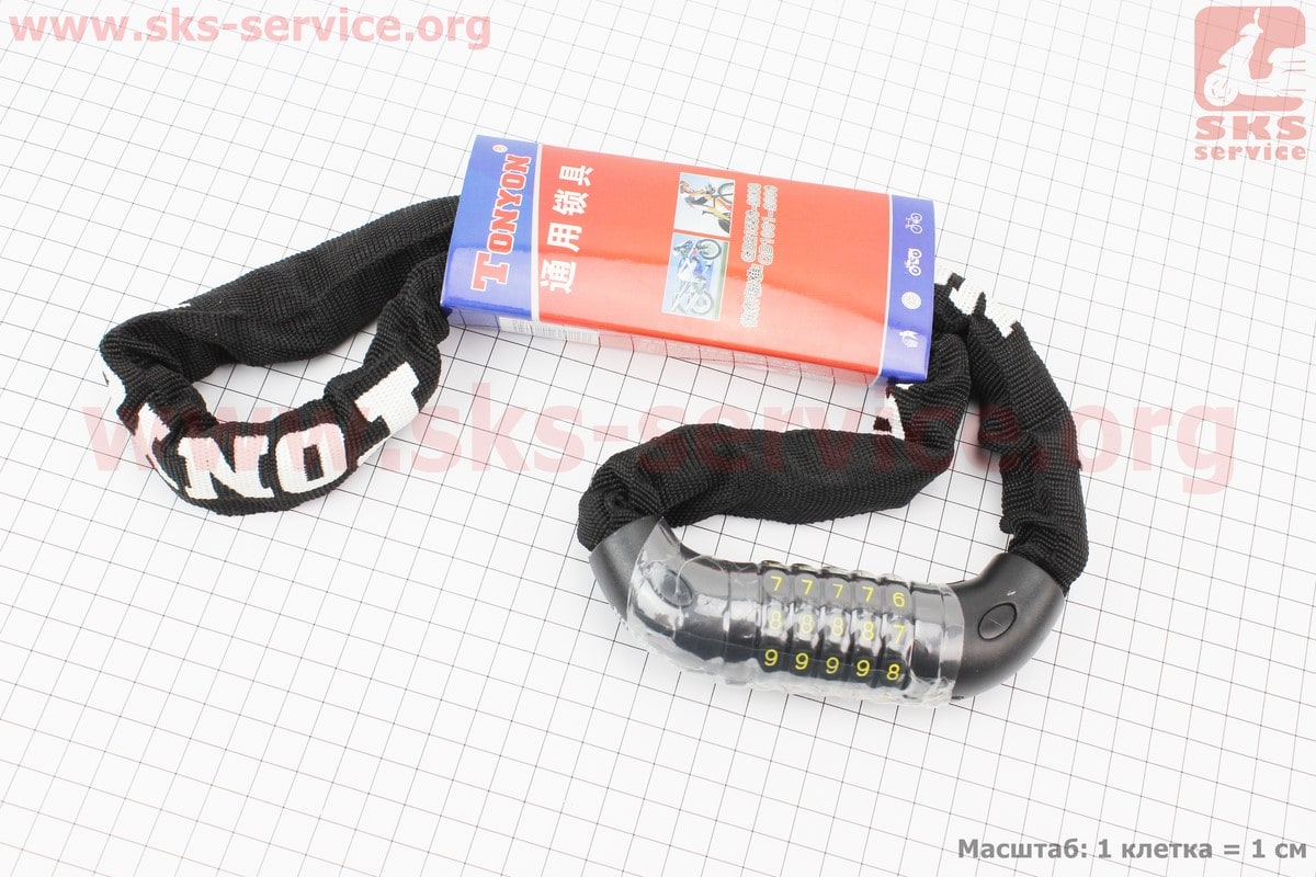 Замок противоугонный цепной 900х6мм с 5-и значным кодом, чёрный TY777
