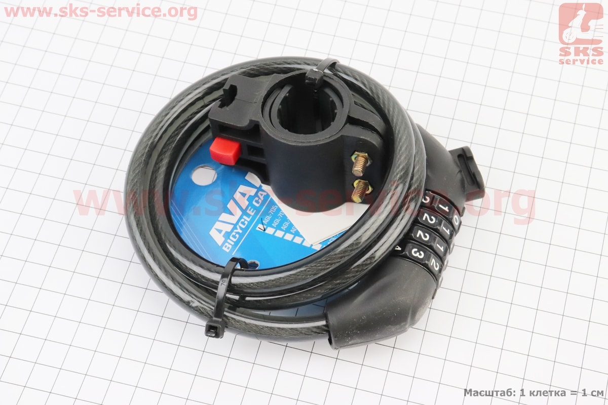 Замок противоугонный тросовый 1000х10мм с 4-х значным кодом, крепл. за трубу сидения, AGL-705