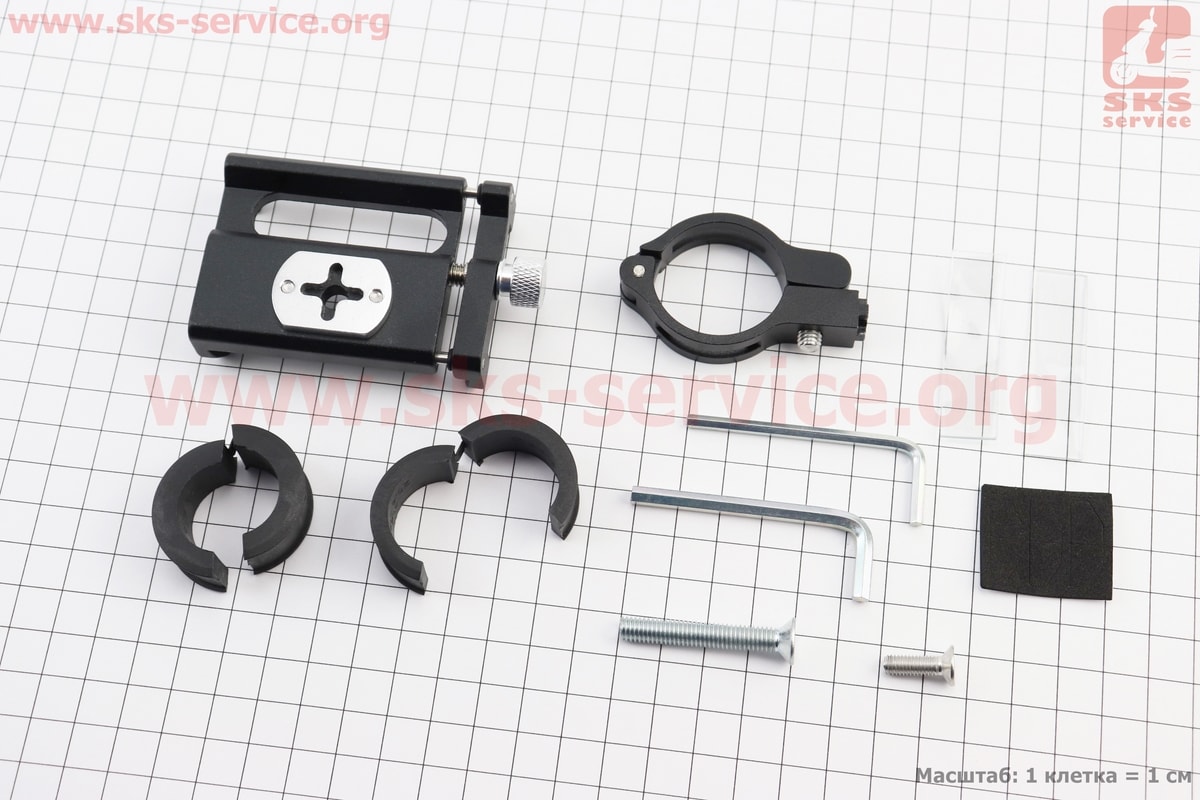 Держатель телефона на руль алюминиевый, ширина 50-100мм регулируемая, чёрный G-85