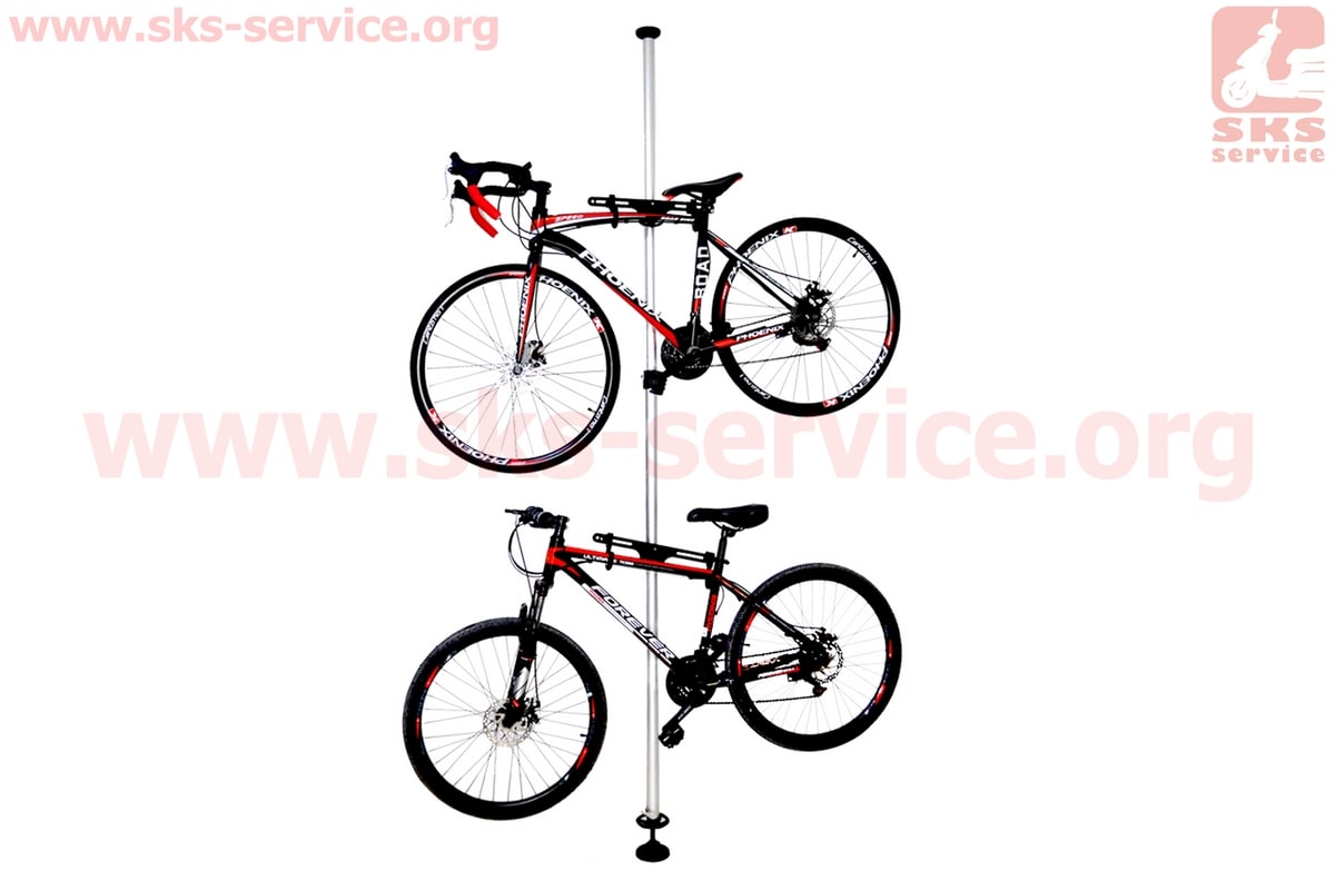 Підставка під 2 велосипеди телескопічна 1,8-3м, регульований кут нахилу велосипеда, алюмінієва, сіра HS-051
