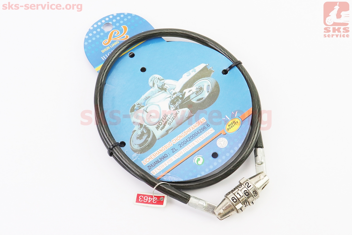 Замок противоугонный тросовый 800х8мм с 4-х значным кодом