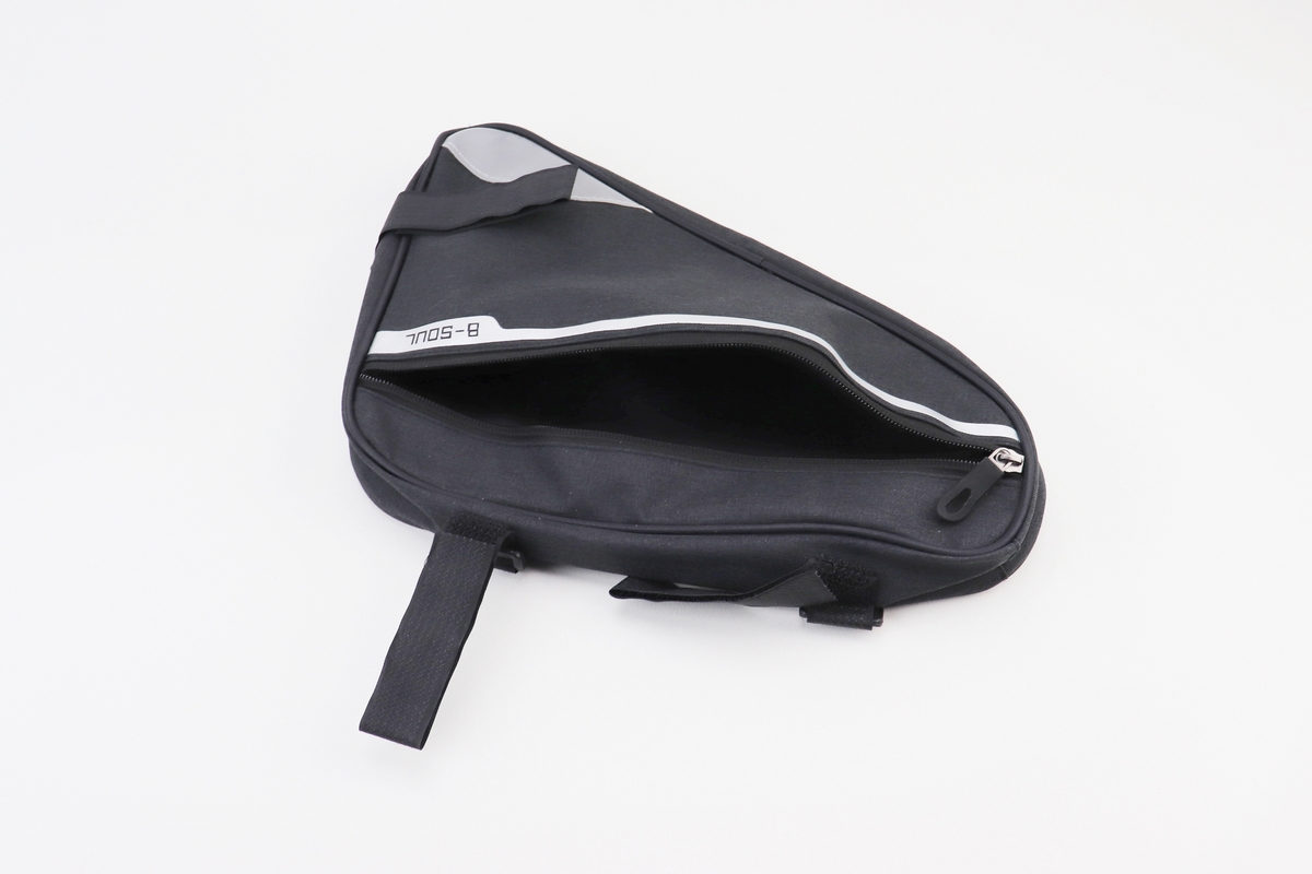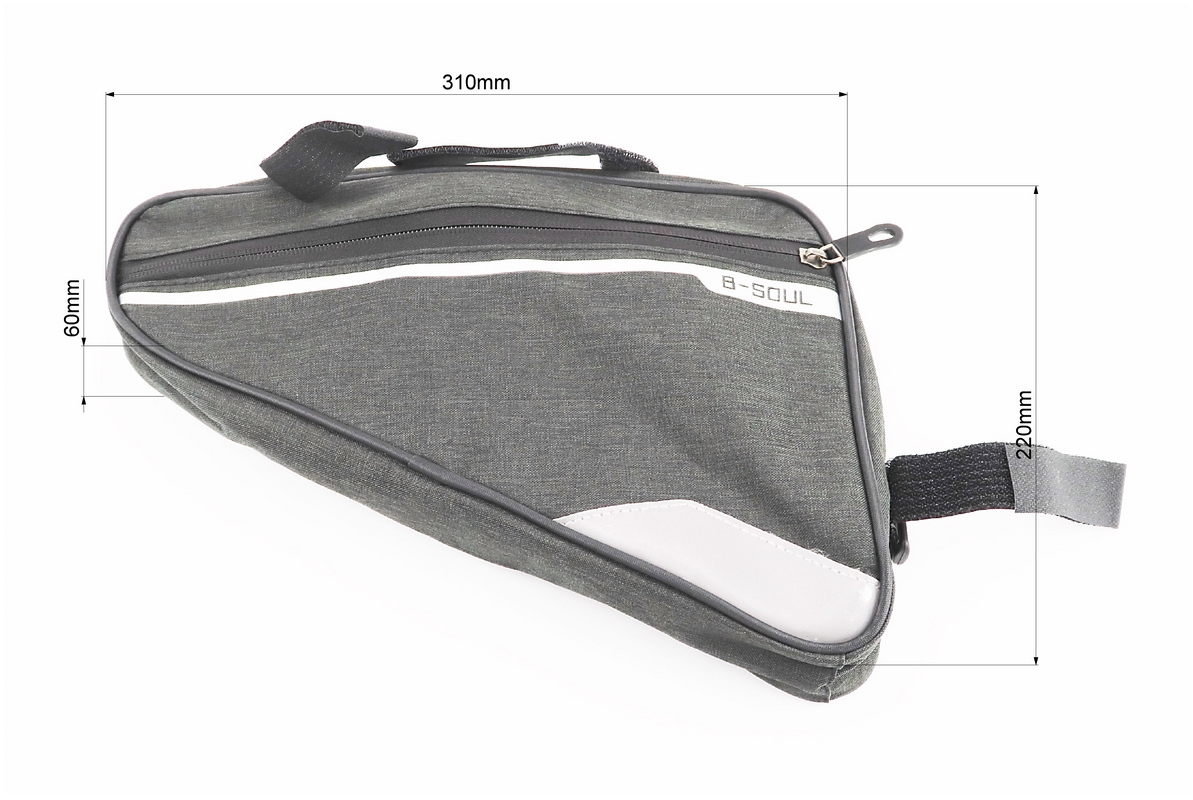 Сумка під раму трикутна 350х290х200мм, кріпл. на липучці, вологозахисна, світловідбиваючі смуги, чорна