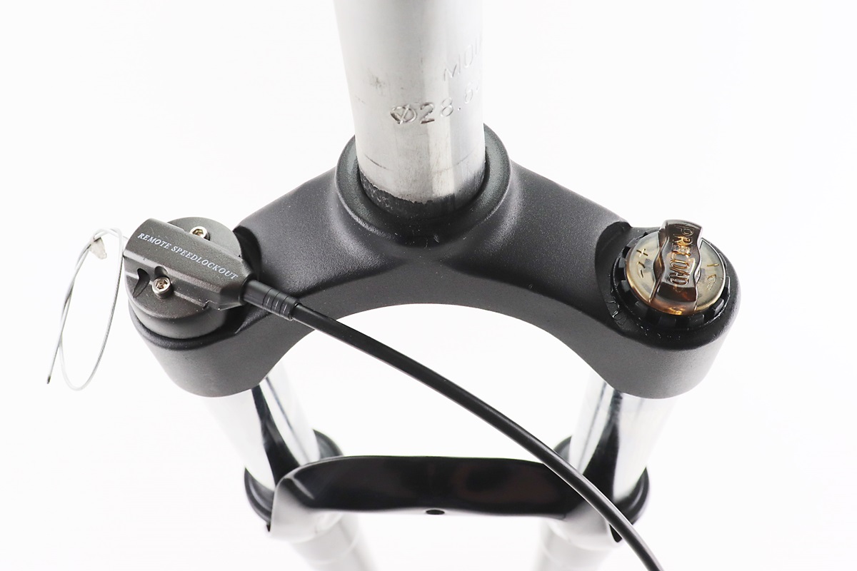 Вилка 26" амортизационная, без резьбы 1-1/8" (28,6мм), шток 255мм, с ходом 100мм, Disk-brake, пружинно-масляная, выносной Lockout, чёрная N780