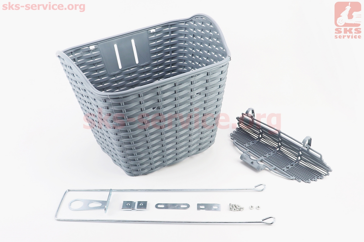 Корзина багажная передняя 28" с крышкой, пластмассовая, серая TH-059