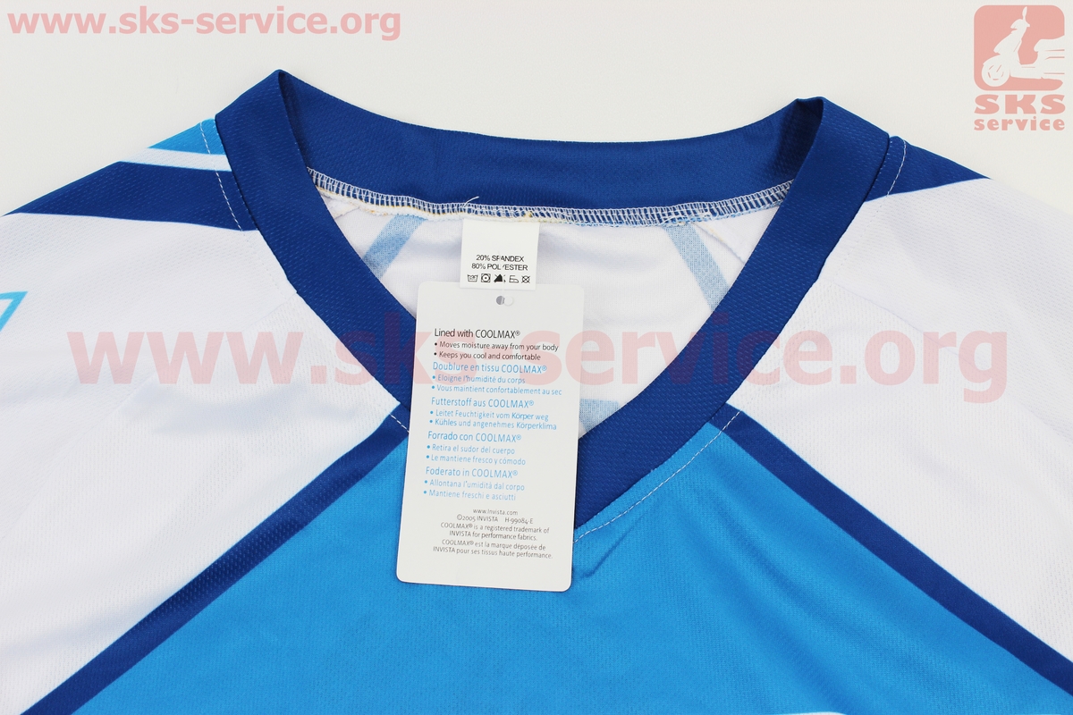 Футболка (Джерси) мужская L-(Polyester 80% / Spandex 20%), короткие рукава, свободный крой, бело-синяя, НЕ оригинал