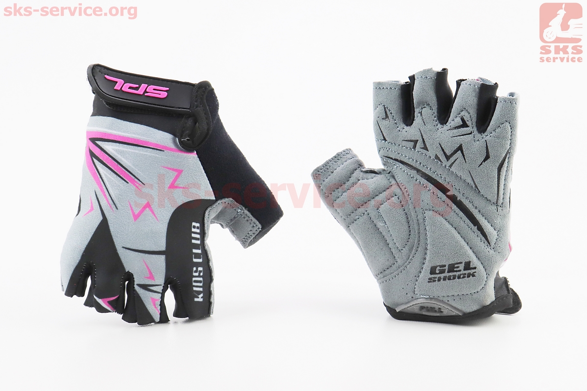 Перчатки детские без пальцев (7-8 лет) с мягкими вставками под ладонь, чёрно-серо-розовые SKG-1553