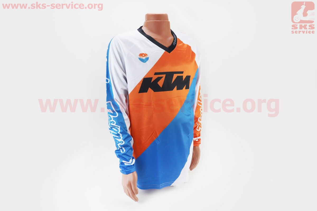 Футболка (Джерси) мужская L-(Polyester 100%), длинные рукава, свободный крой, бело-оранжево-синяя, НЕ оригинал