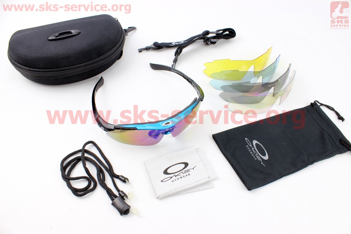 Очки с набором для ухода, сменные линзы 5шт, в жёстком чехле, сине-чёрные НЕ оригинал