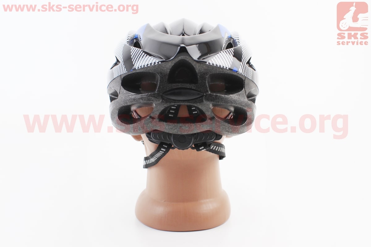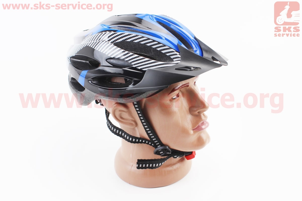 Шлем велосипедный L (54-62 см) съёмный козырёк, 21 вент. отверстий, чёрно-сине-белый