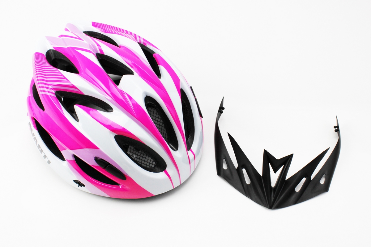 Шлем велосипедный M (54-57 см) съёмный козырёк, 18 вент. отверстий, бело-розовый AV-01