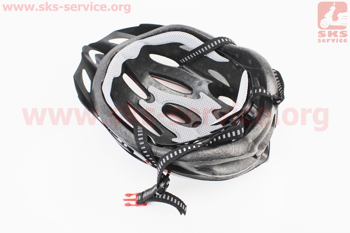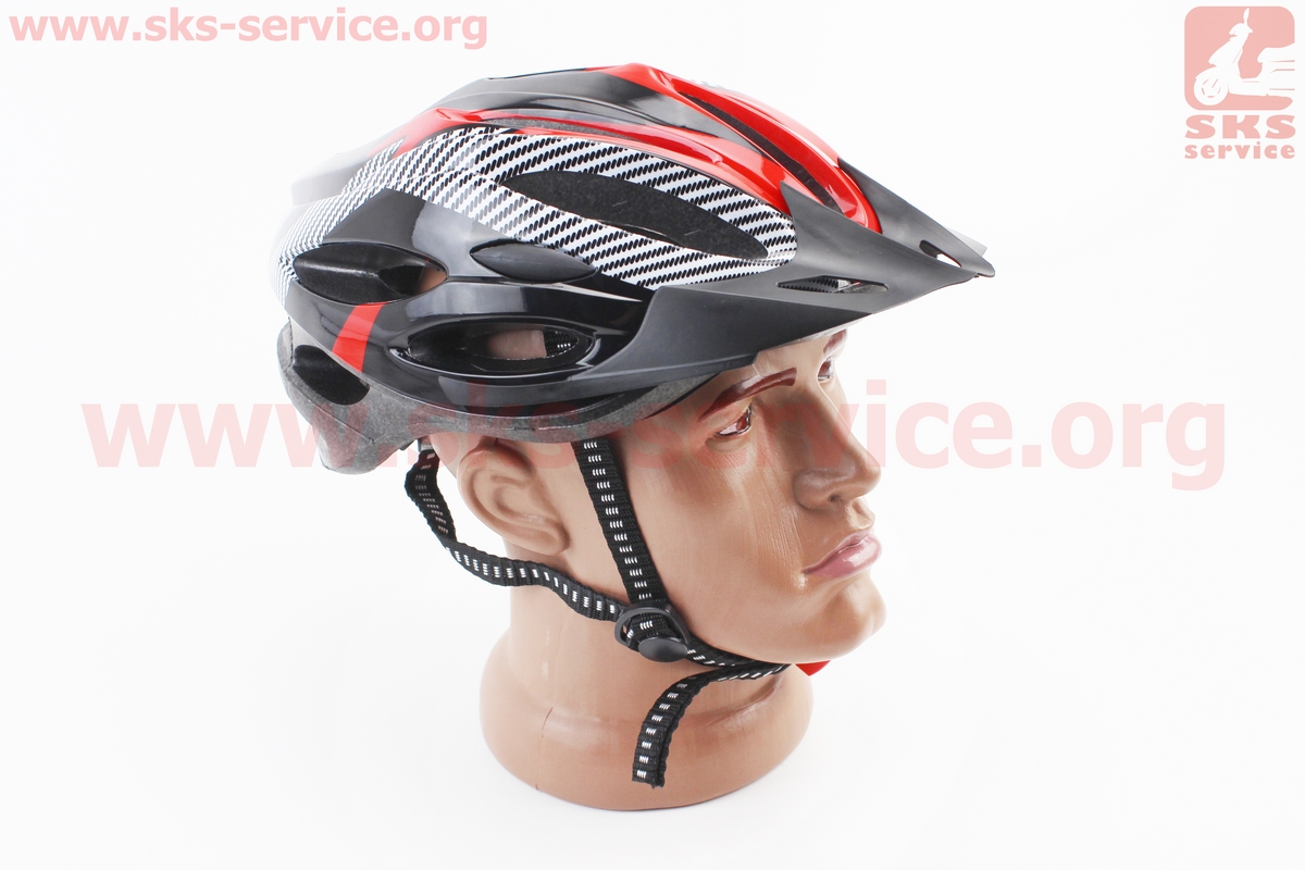 Шлем велосипедный L (54-62 см) съёмный козырёк, 21 вент. отверстий, чёрно-красно-белый