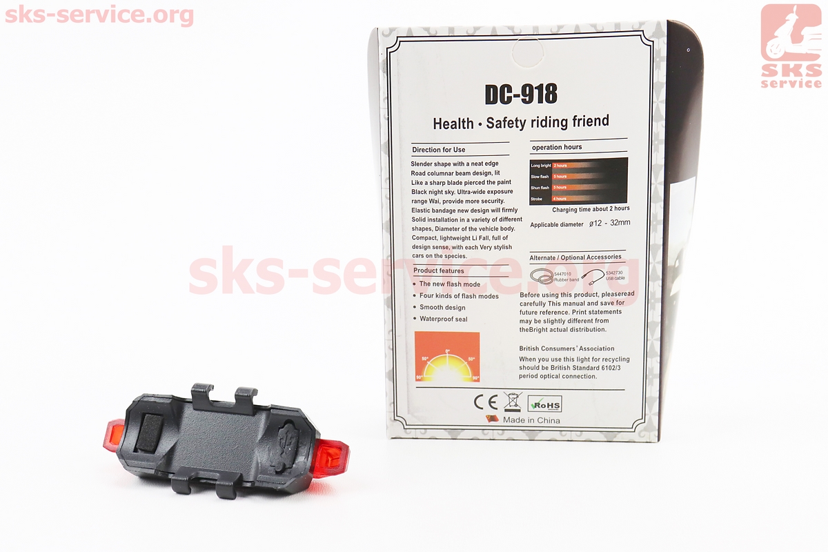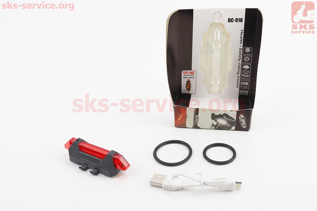 Фонарь задний 5 диодов 15 lumen, Li-ion 3.7V 330mAh зарядка от USB, влагозащитный, BS-216/DС-918