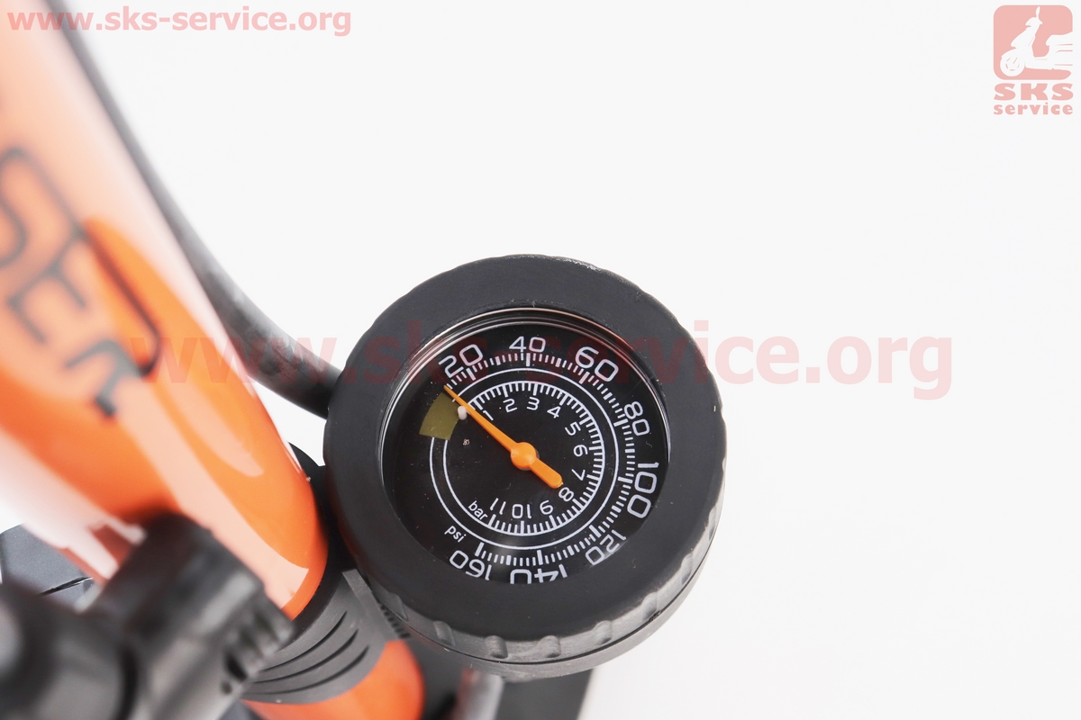Насос ручной "напольный" с манометром 160 psi/11 bar, под штуцера Schrader&Presta, оранжевый LC-3261