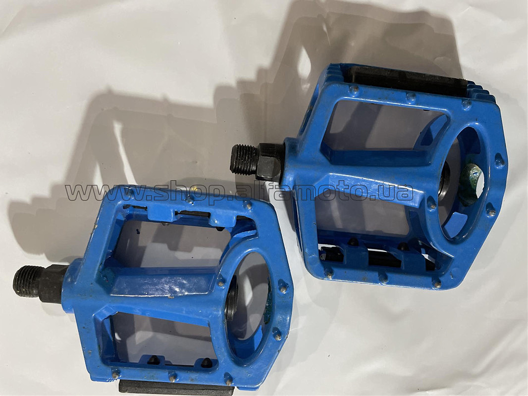 Педали велосипедные горные (с катафотами, металл, широкие, голубые, клепанные шипы) YKX