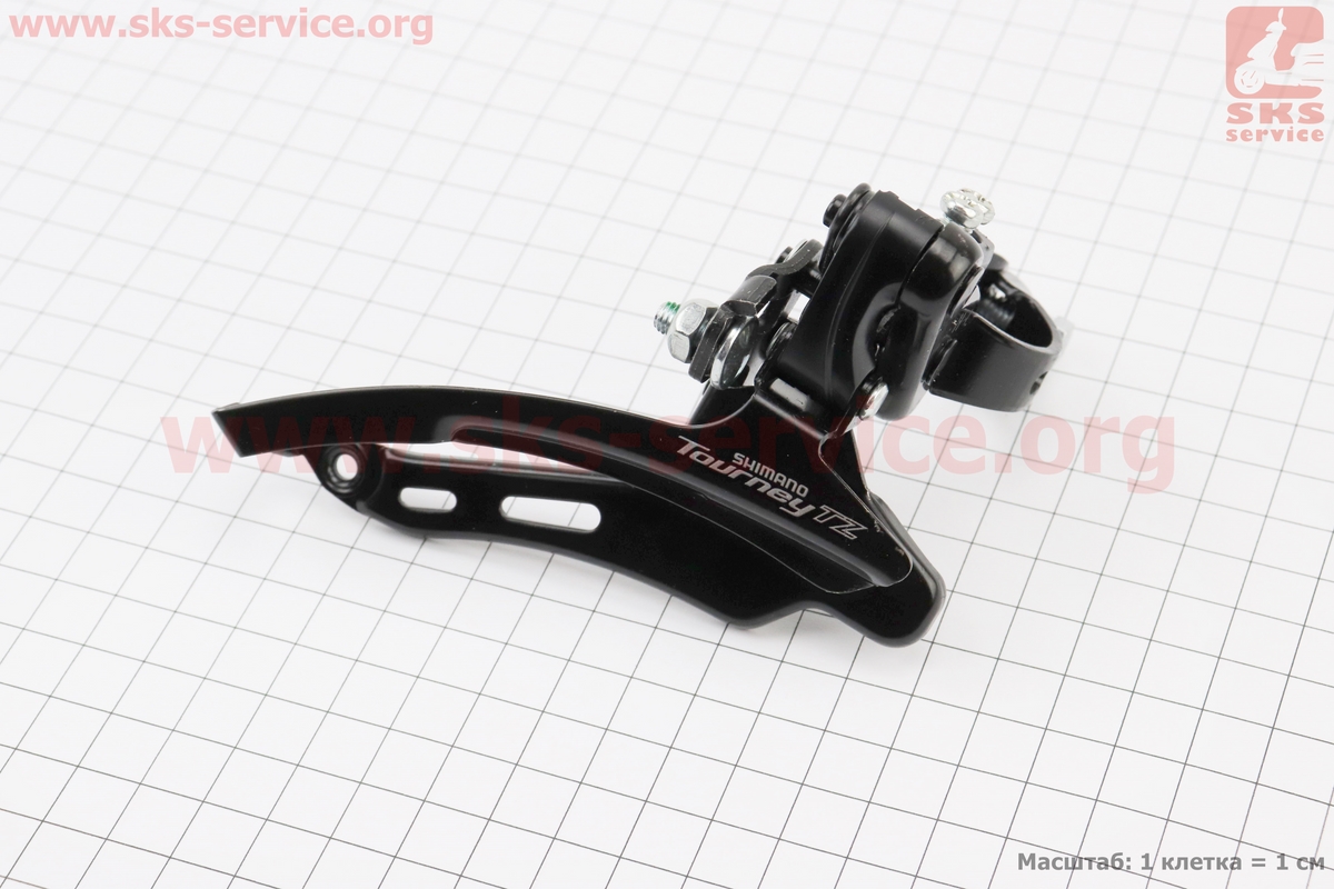 Перекидка цепи передняя с верхней тягой, крепл. 28,6мм, под звезду 48Т, чёрная FD-TZ 510