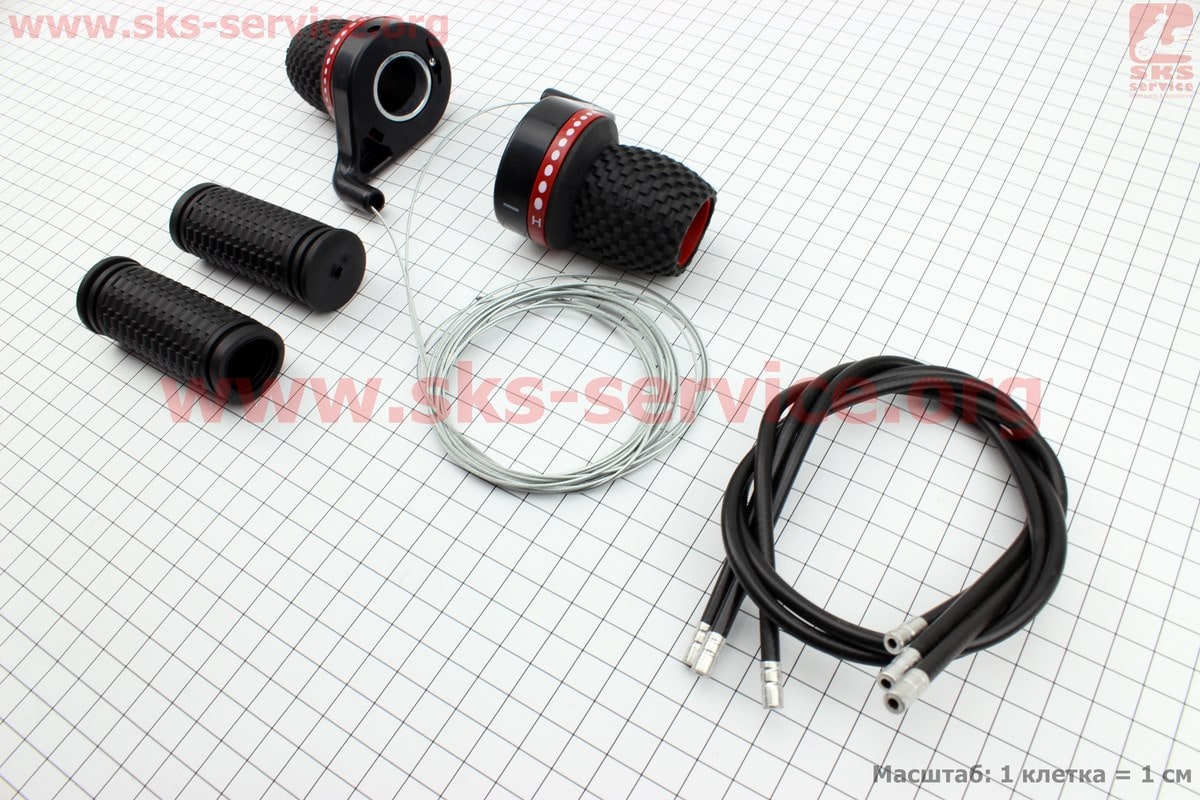 Переключатели (грипшифт) 3x7 скоростей+рукоятки руля+троса, чёрно-красные