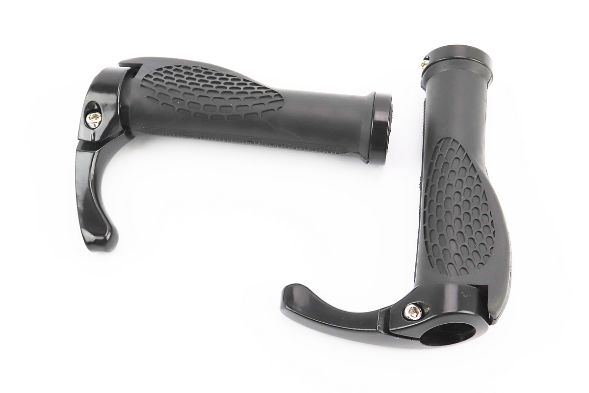 Ручки руля 140мм с зажимом Lock-On, эргономичные с рожками, чёрные