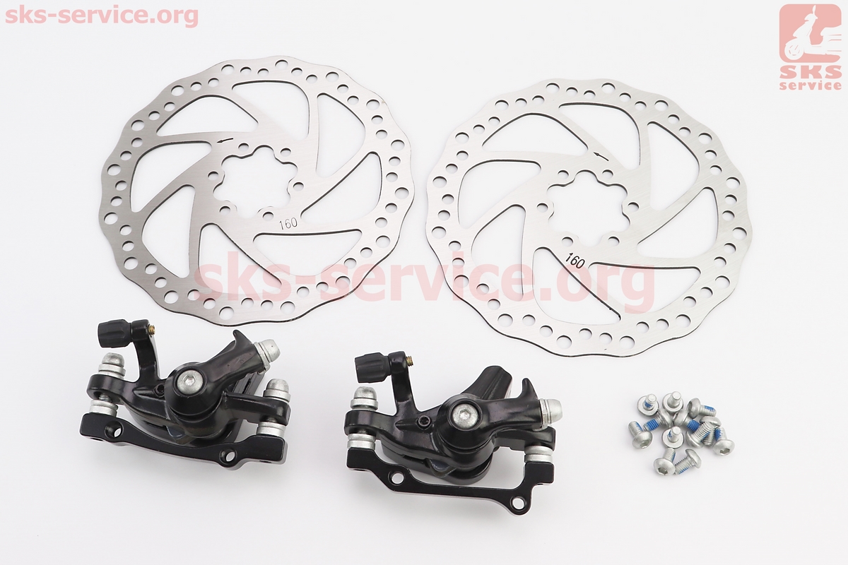 Тормоз Disk-brake передний (F160/R140мм)+задний (F180/R160мм), диски 160мм, крепл. 6 болтов, чёрный DX-2007