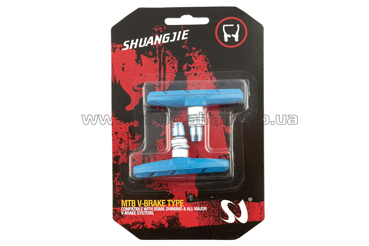 Колодки тормозные велосипедные (ободные, V-brake) (синие) SHUANGJIE