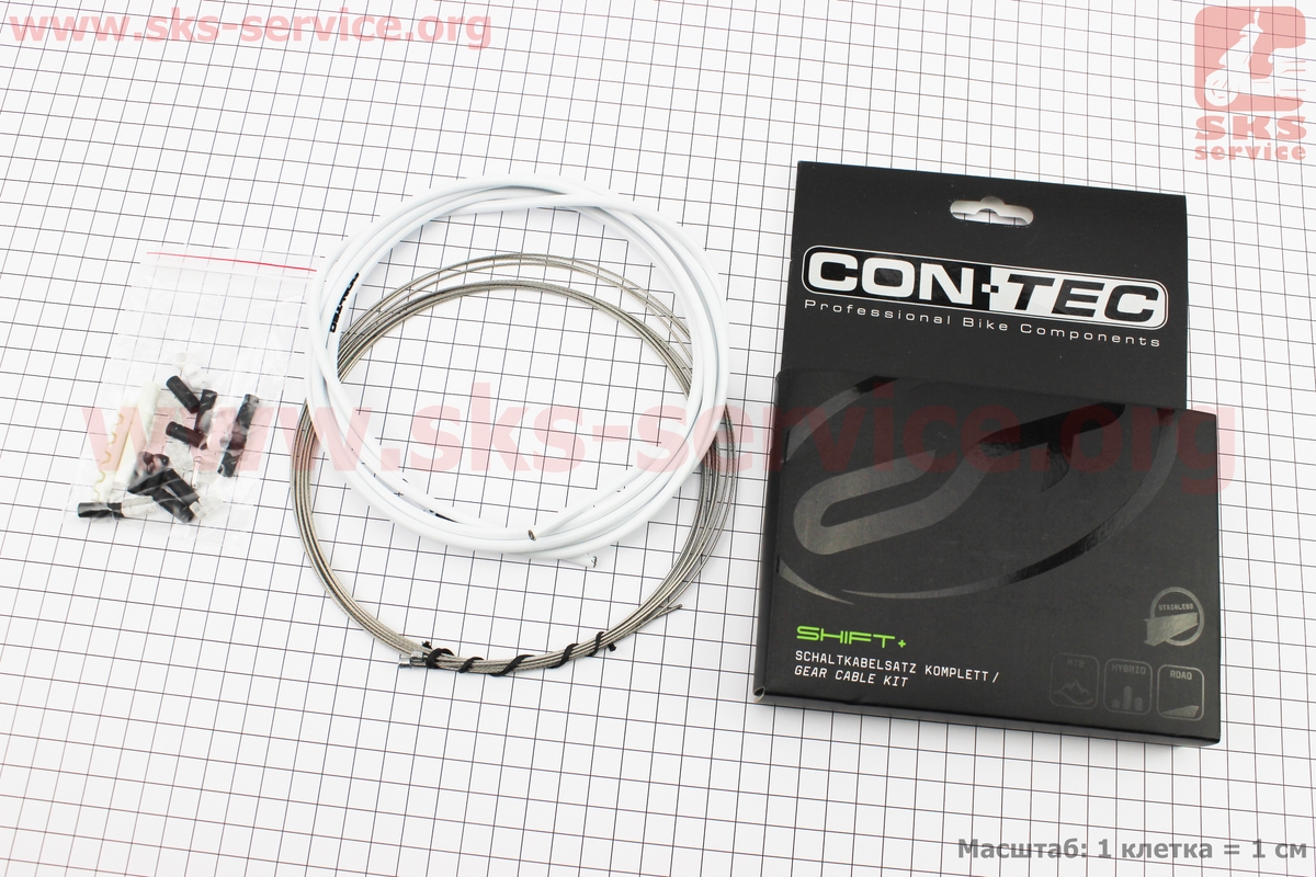 Трос - комплект переключения универсальный "ПОЛНЫЙ" (рубашка 4мм х 2,7м, троса Slick Stainless 2000/2300мм,колпачки,концевики,фиксаторы,защита рамы), белый