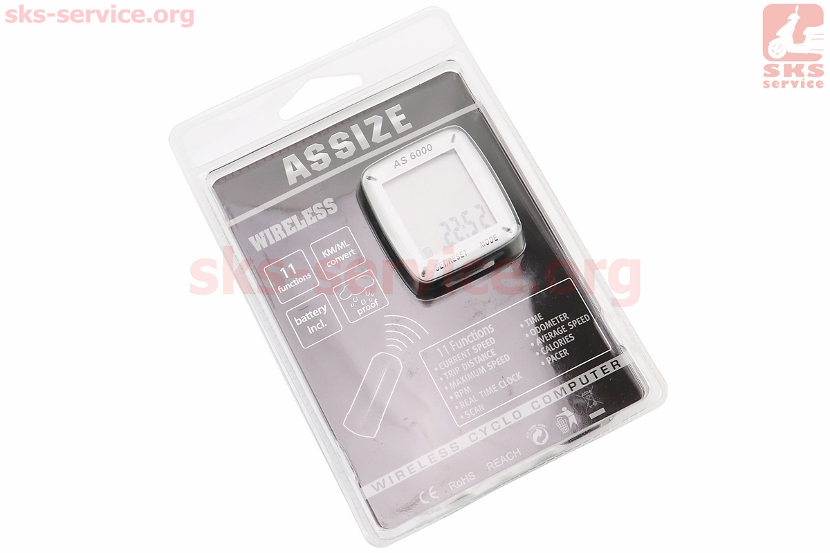 Велокомпьютер 11-функций, беспроводной, серо-чёрный AS-6000 (без батареек)