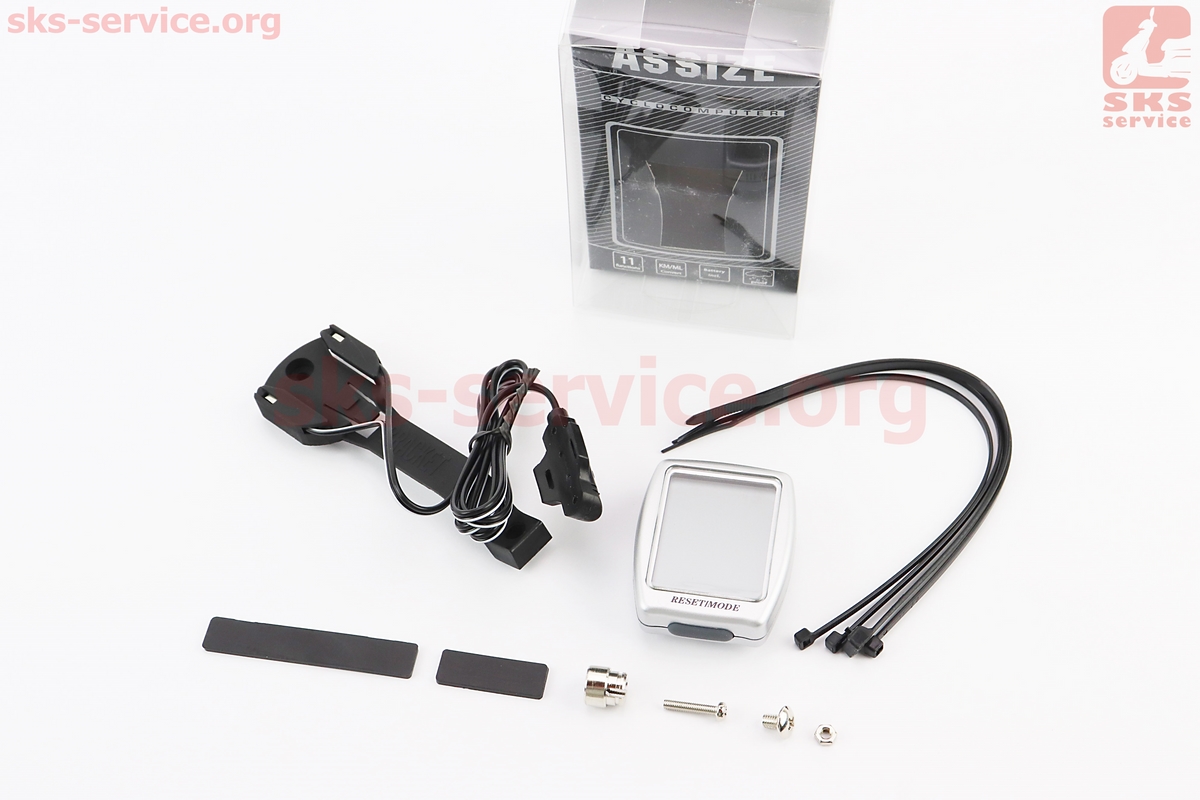 Велокомпьютер 11-функций, проводной, серый AS-411 (без батареек)