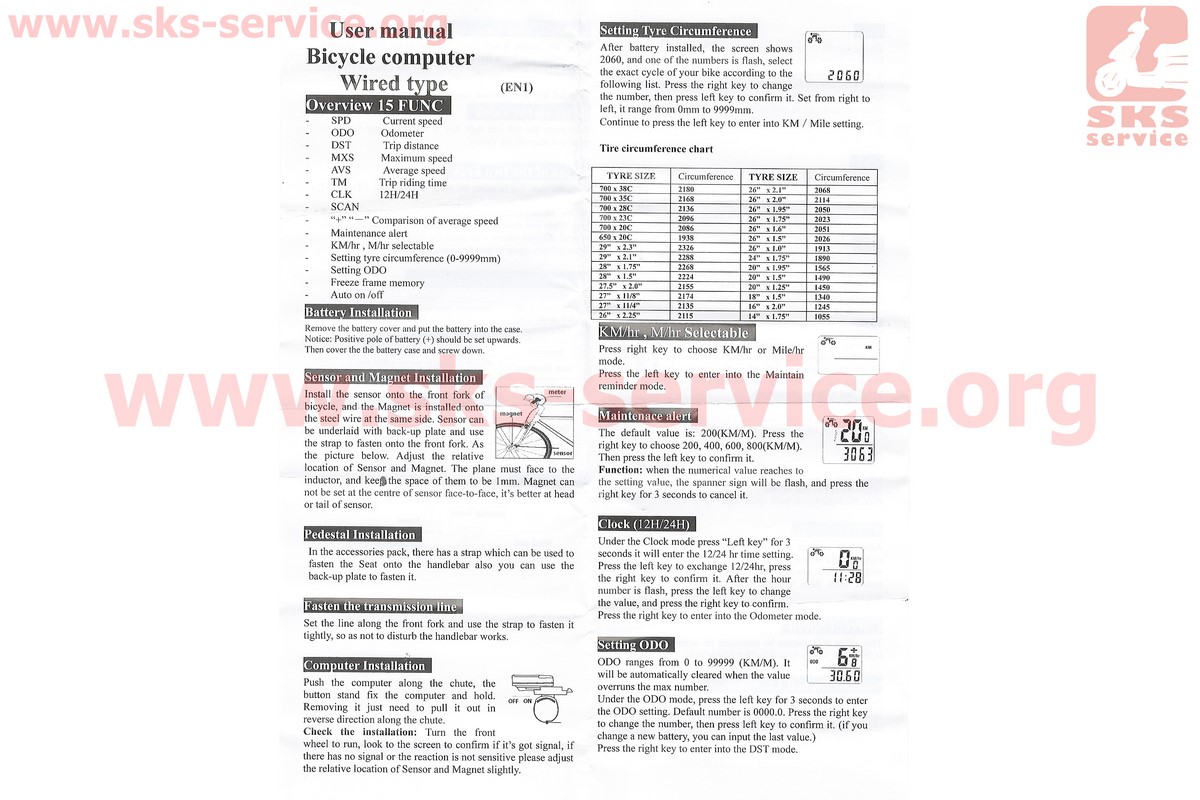 Велокомпьютер 15-функций, проводной, чёрный (без батареек)
