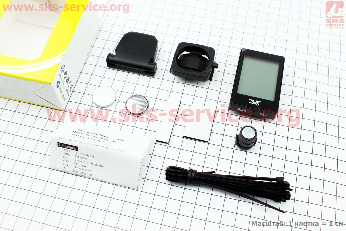 Велокомп'ютер 22-функції, бездротовий, 1.9" дисплей з сенсорними кнопками управління, вологозахисний, чорний YS-668С (без батарейок)