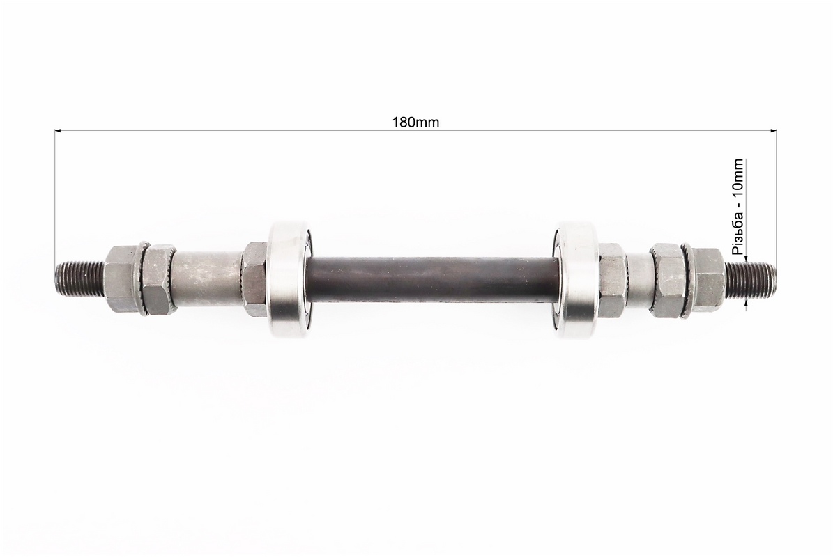 Ось задняя MTB M10х180мм в сборе, пром-подшипники 6200 2RS, под гайку, чёрная