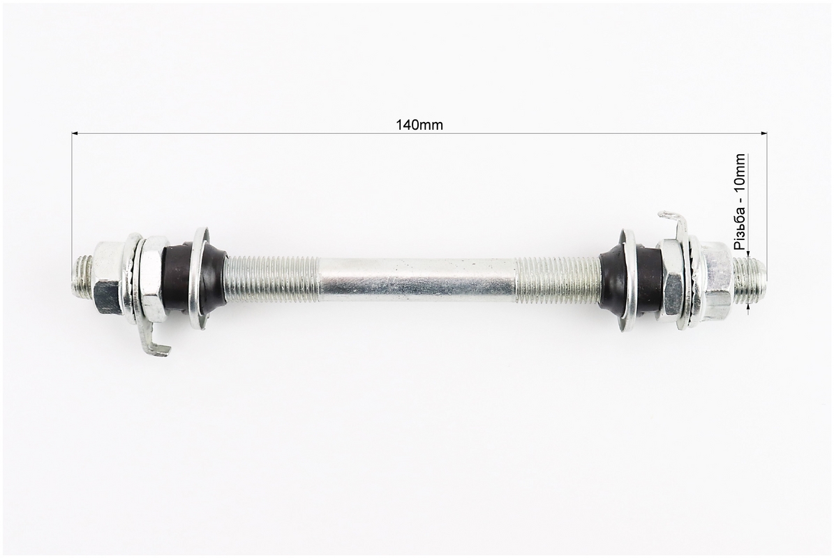Ось передняя MTB M10х140мм в сборе, под гайку, хром, тип 2