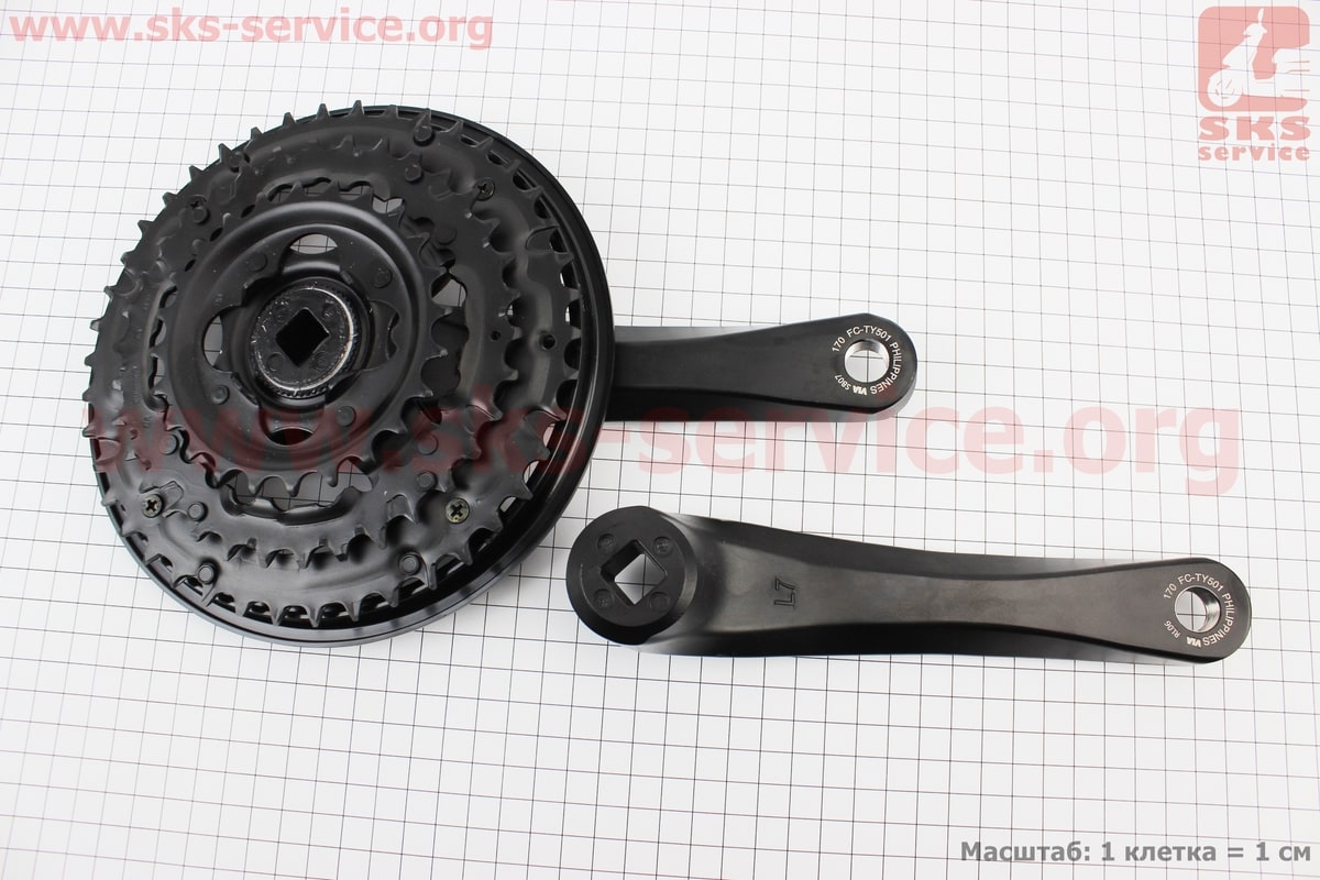 Шатуны "квадрат" 170мм, 42.34.24T MTB, алюминиевые, чёрные FC-TY501