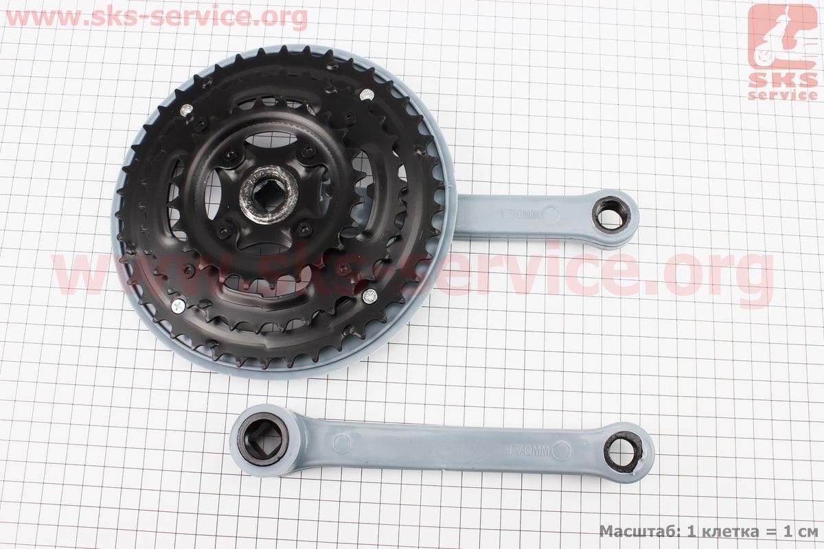 Шатуны "квадрат" 170мм, 42.34.24T MTB, серо-синие GR 02 (узкий), (возможны потертости)