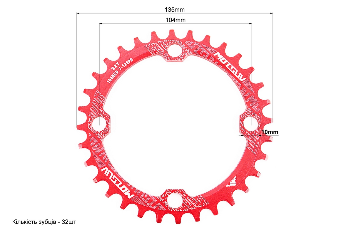 Звезда передняя MTB Narrow Wide 32Т (BCD:104мм), алюминиевая, красная