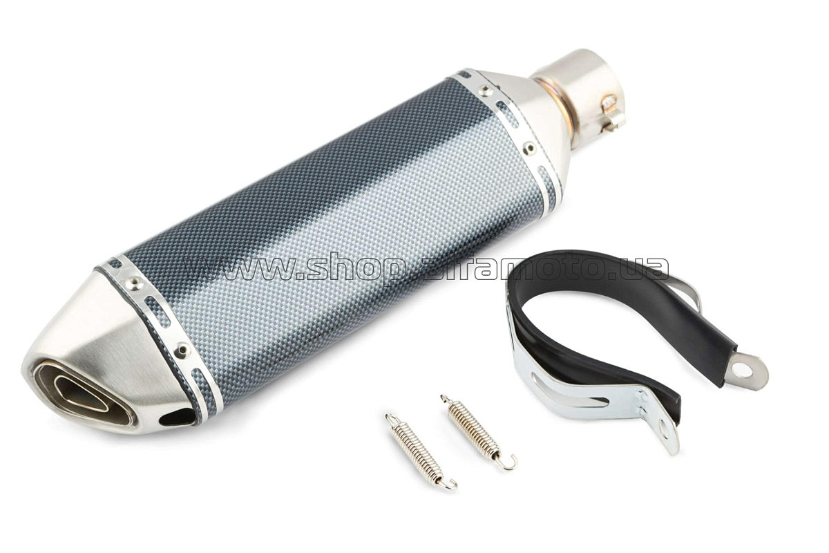 Глушитель (тюнинг) 370*105mm (нержавейка, три-овал, карбон светлый, прямоток, mod:2) 118