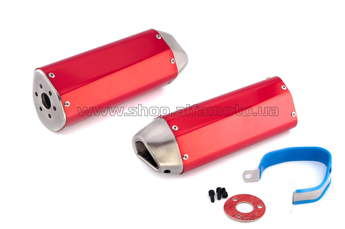 Глушитель (тюнинг) 370*105mm (нержавейка, три-овал, красный, прямоток) 118