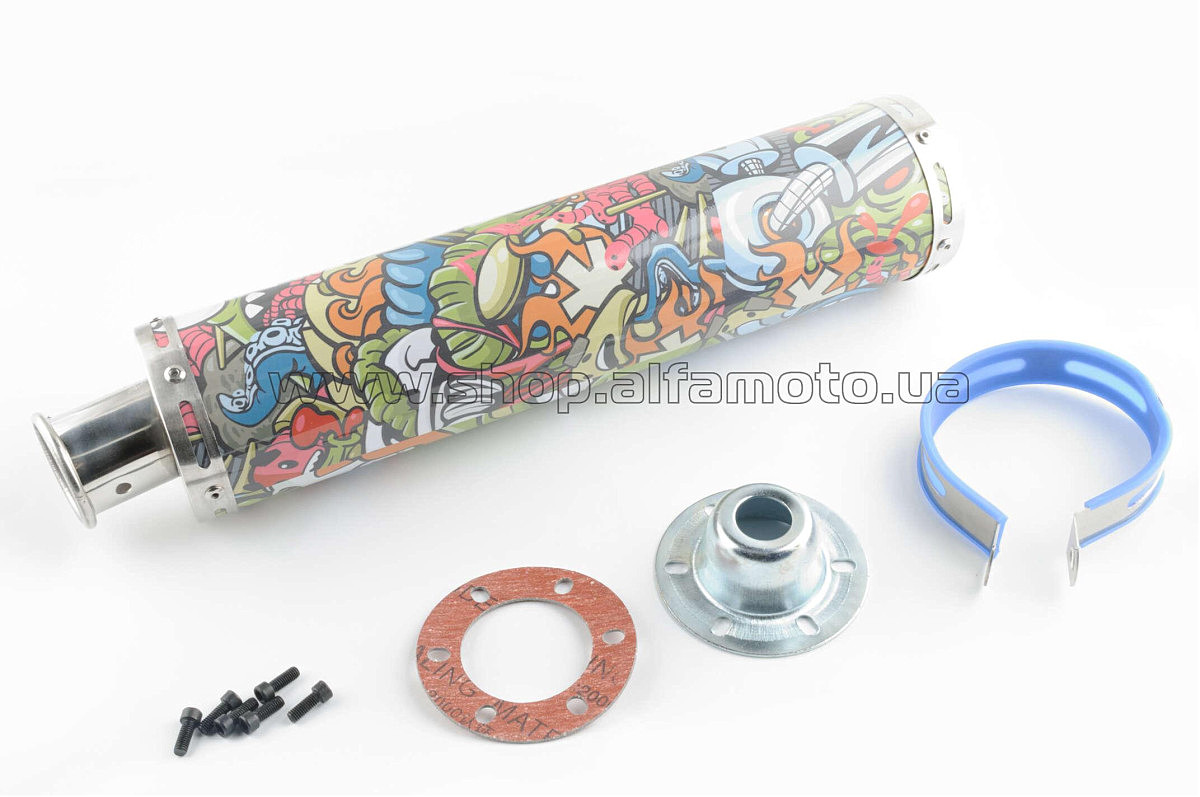 Глушитель (тюнинг) 420*100mm, креп. ?78mm (нержавейка, граффити, прямоток, mod:1)