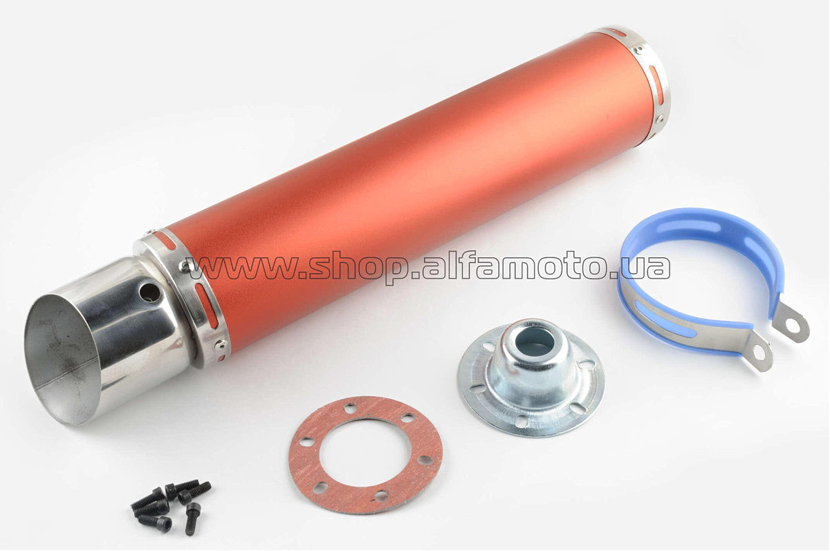 Глушитель (тюнинг) 420*100mm, креп. ?78mm (нержавейка, красный, прямоток, mod:2)