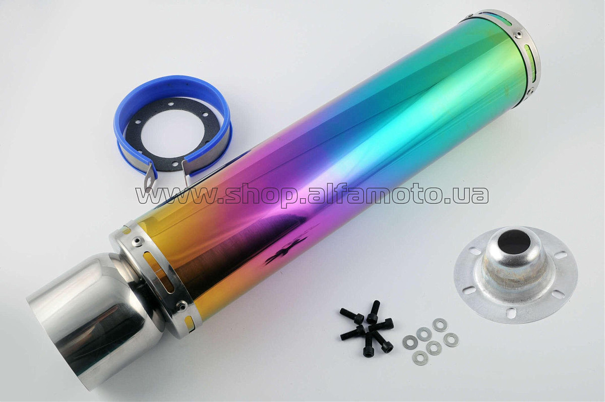 Глушитель (тюнинг) 420*100mm, креп. ?78mm (нержавейка, радуга, прямоток, mod:13)